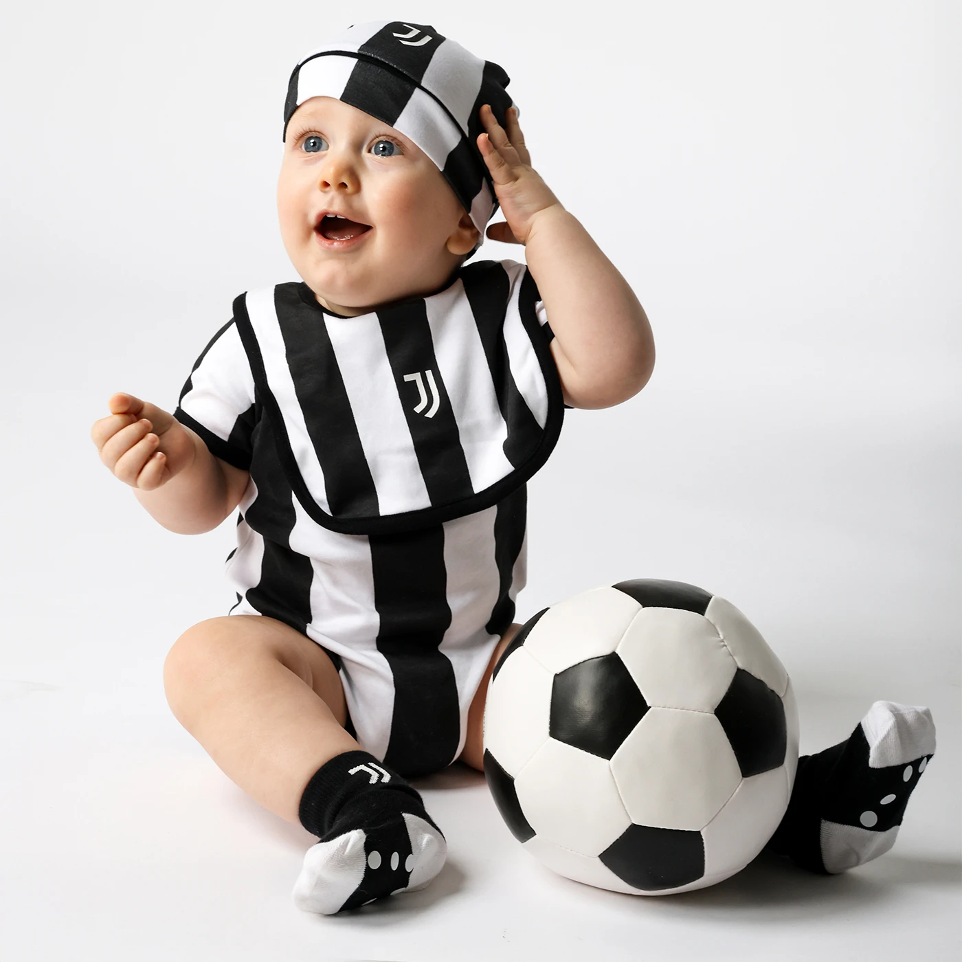 Adorable Juventus gift set featuring a bib, hat, and two pairs of non-slip socks.
