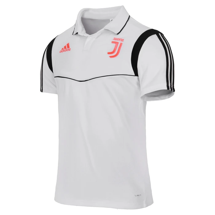 Short sleeve polo shirt with collar. Juventus and adidas logos. 70% cotton, 30% polyester climalite