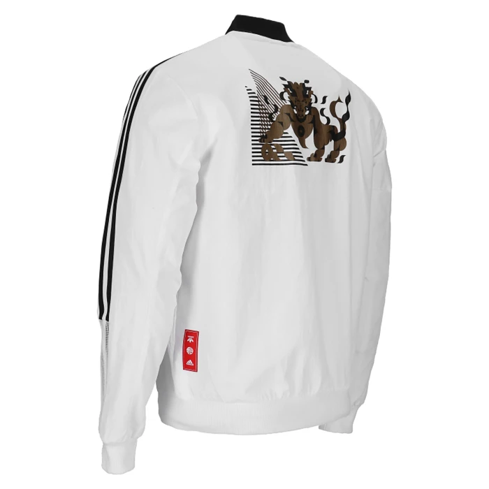 It's a chance to gather and look forward to a year full of possibility. Celebrate Chinese New Year in this adidas football bomber jacket. The design brings together auspicious symbols and creatures from Chinese culture. Representing determination, the qilin embodies the spirit of Juventus. We paired it with flag graphics, in hopes that it brings the team victory. This product is made with recycled content as part of our ambition to end plastic waste.
