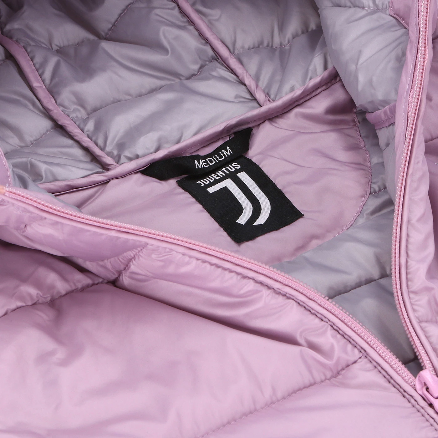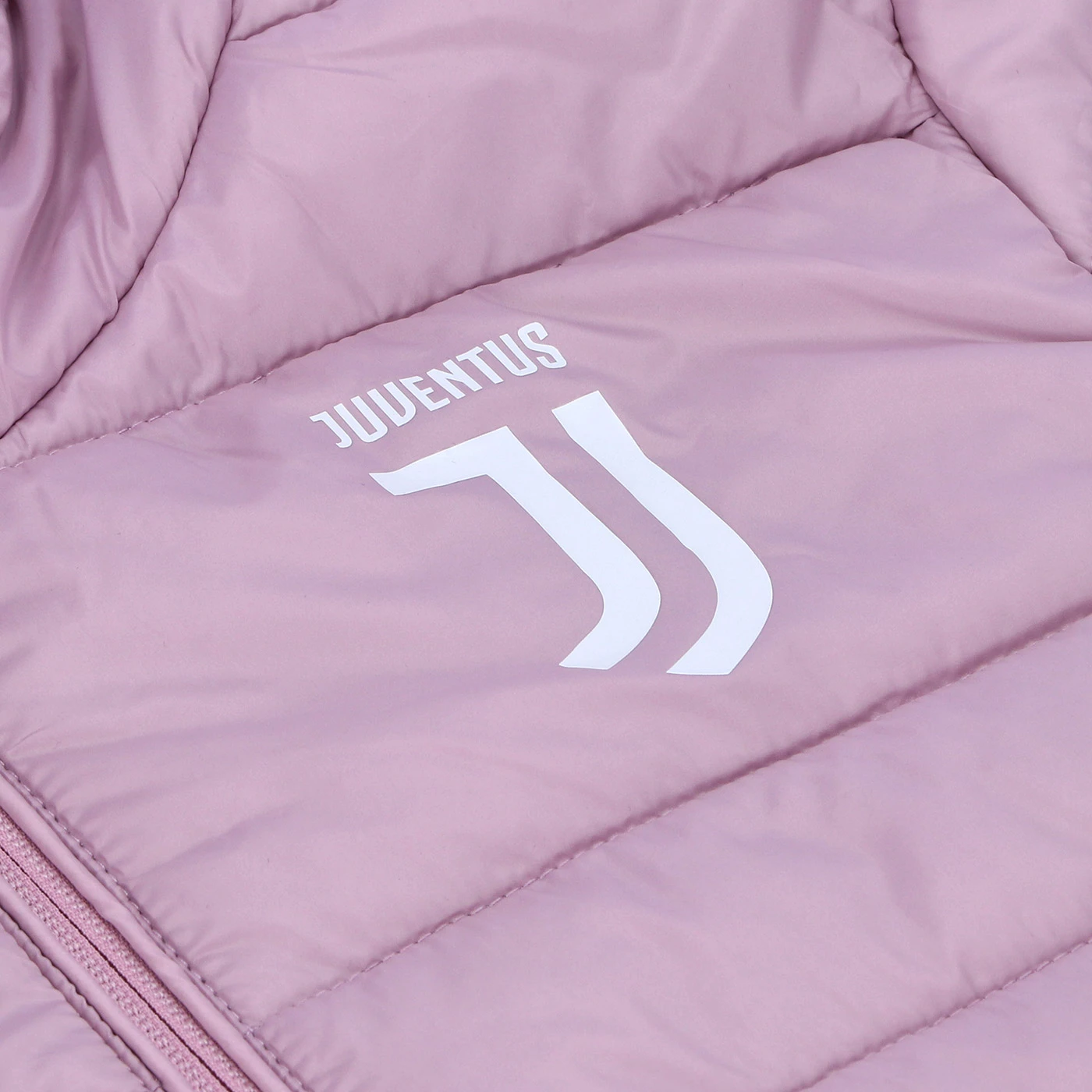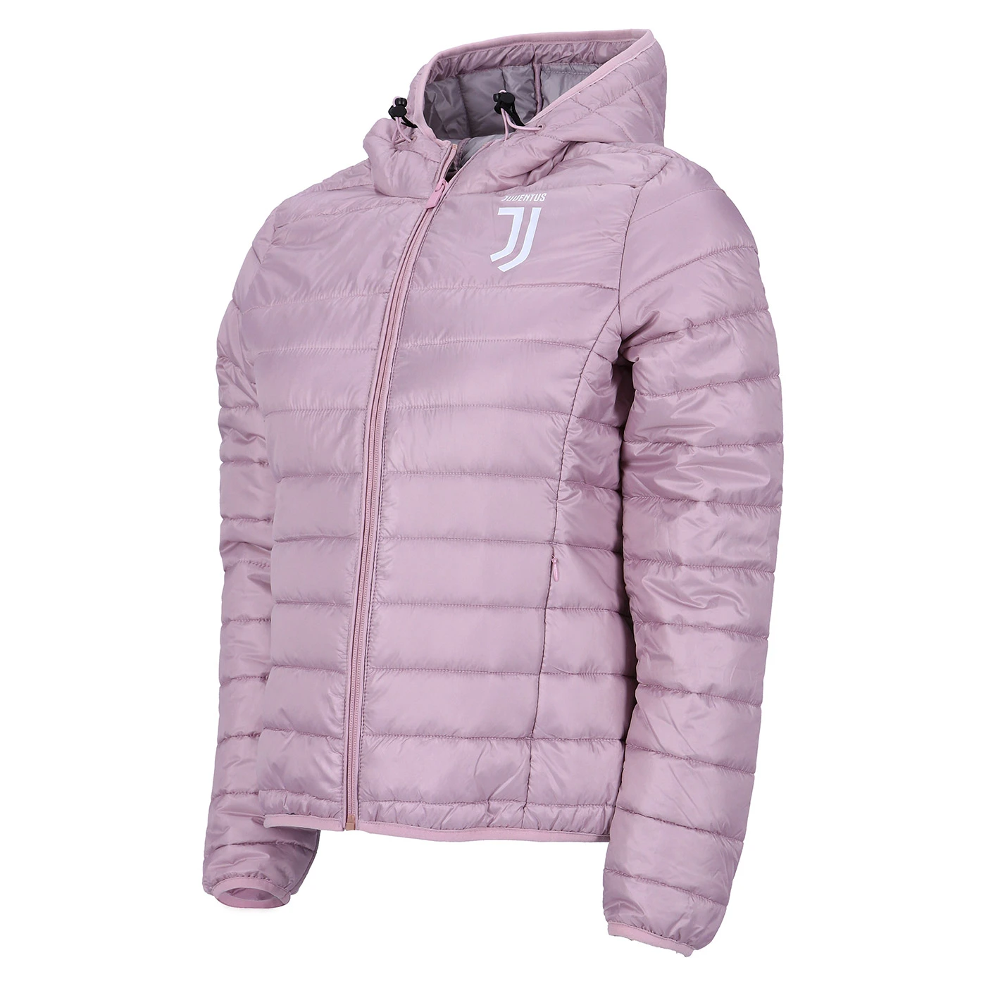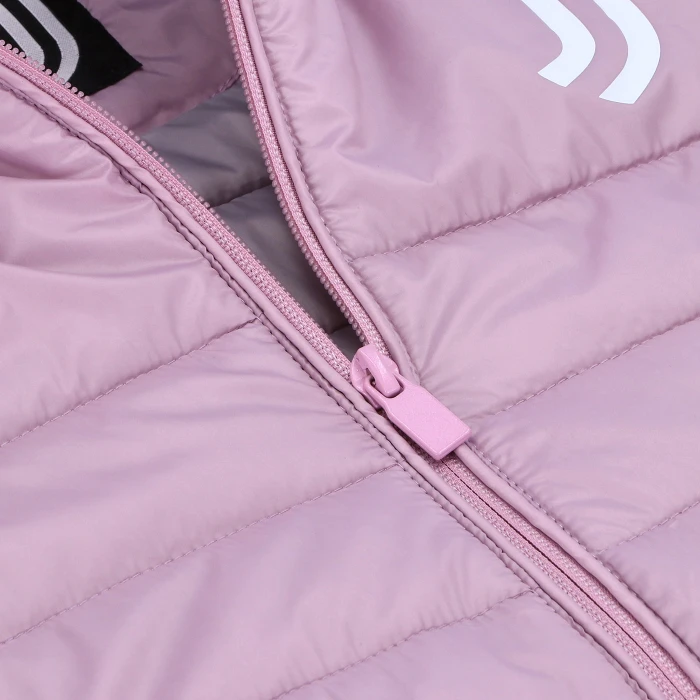 Cappuccio con bordo elasticcizzato, zip personalizzata Juventus, tasche laterali con zip nascosta. Logo Juventus bianco stampato sul davanti. 100% nylon.