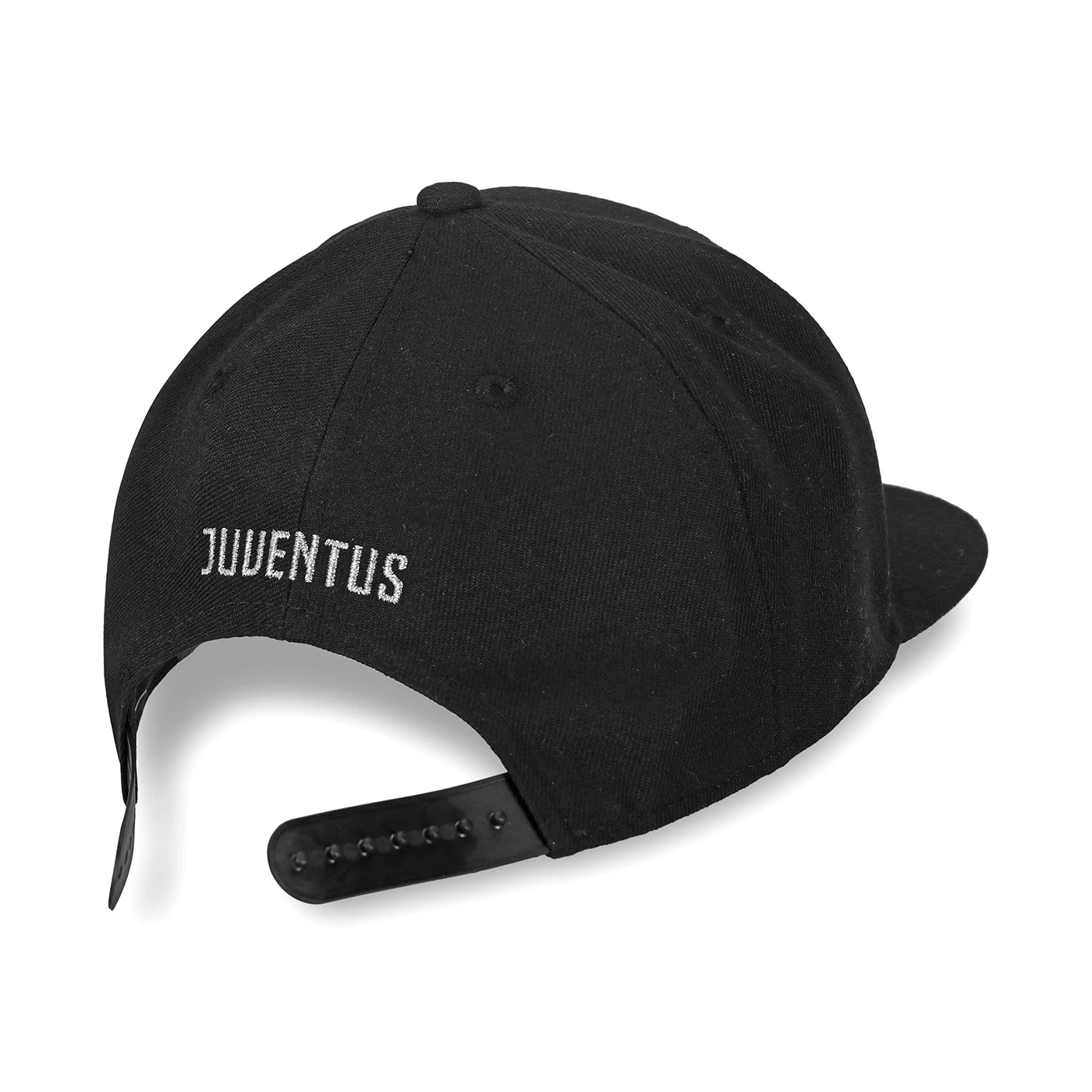 100% cotone. Cappellino con visiera e fascetta regolabile sul retro. Logo Juventus ricamanto.