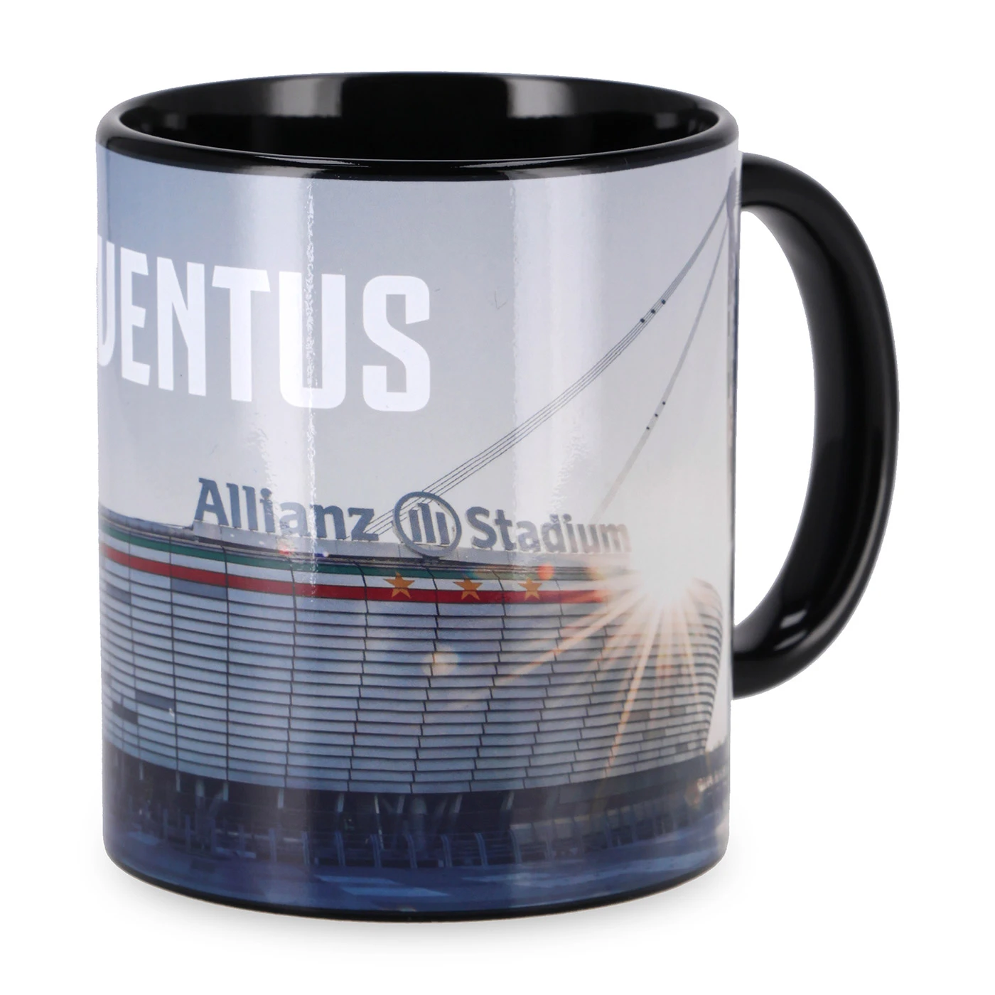 Juventus Hot & Cold heat-changing mug: sleek black when cold, it reveals the Allianz Stadium graphic when filled with a hot drink. Surprise friends and family with this special effect, perfect for showing your Bianconeri spirit.