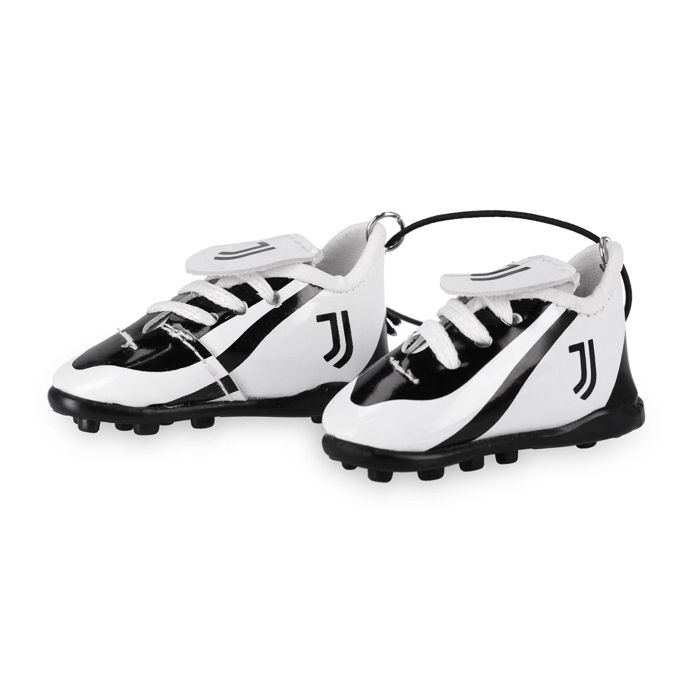 Juventus boot-shaped hanging pendant, perfect for adding a black and white touch to your car interior. Easily attaches to the rear-view mirror thanks to the practical suction cup. A great accessory for fans who want to carry their Juventus passion everywhere.