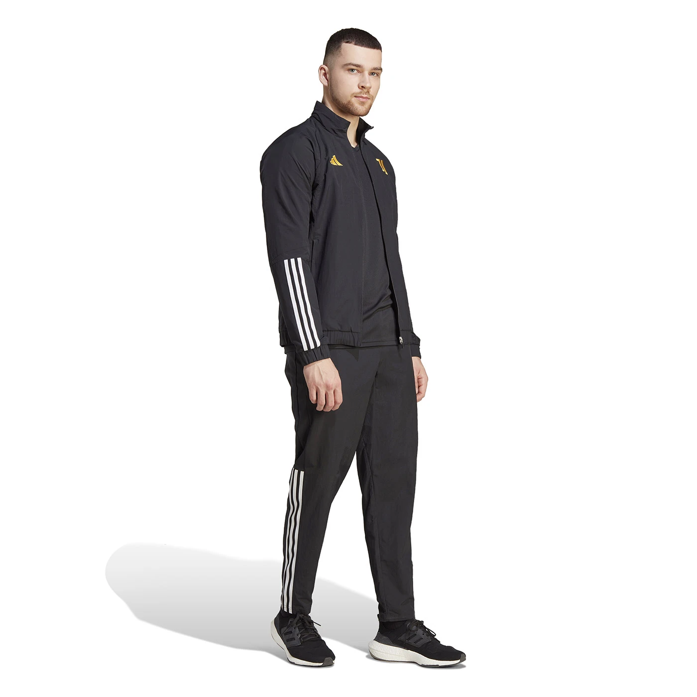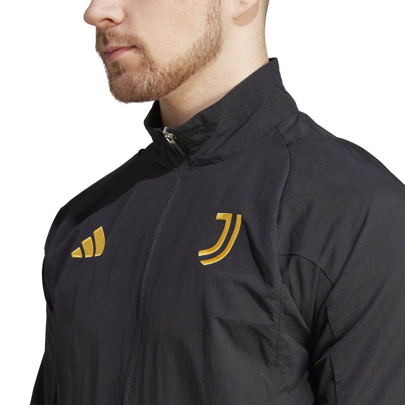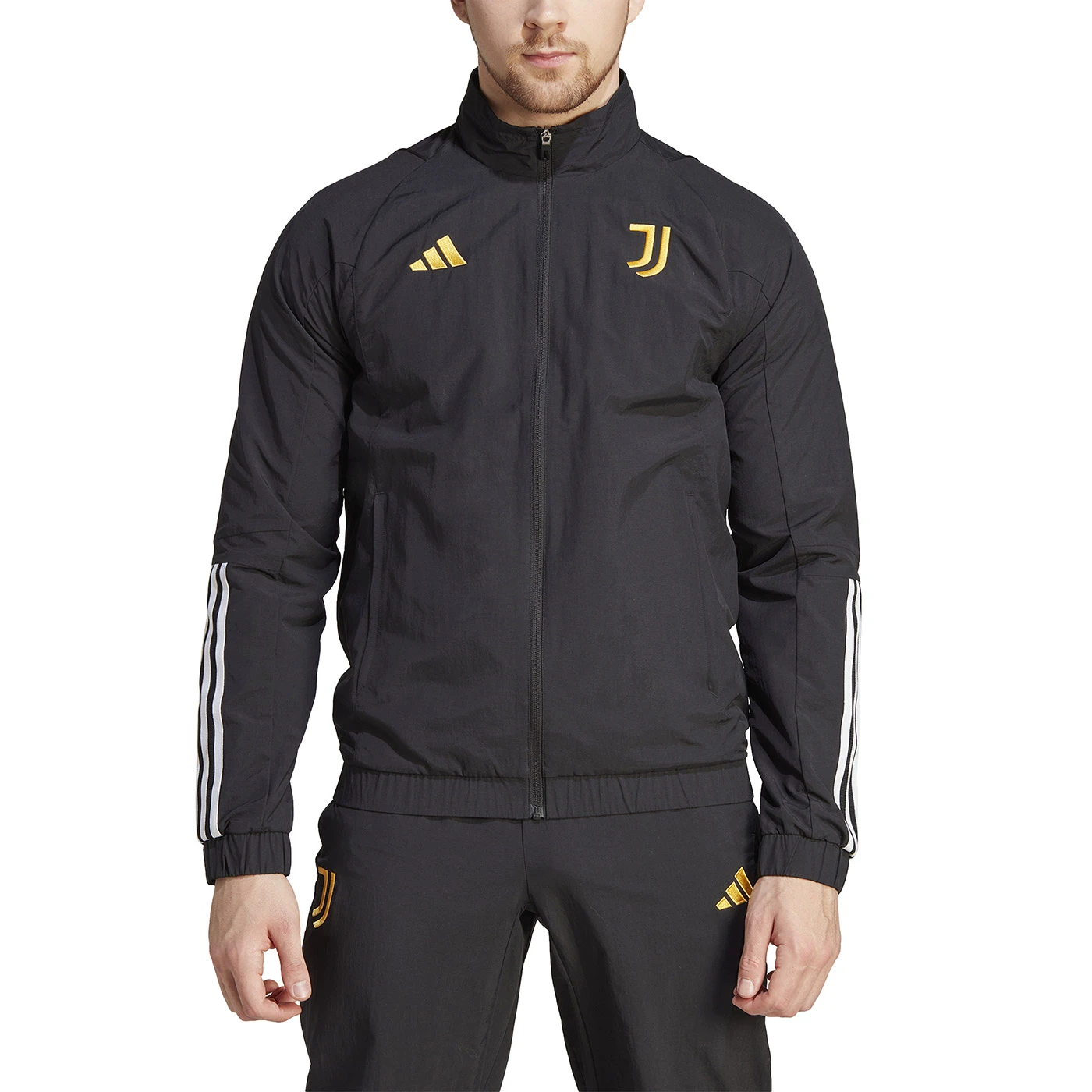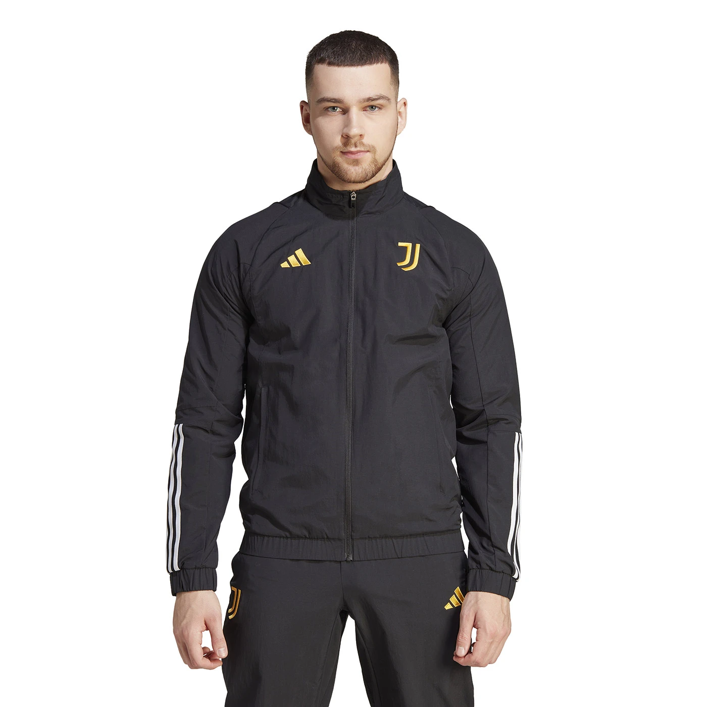 Broadcast your football pride. This adidas presentation jacket was designed to give Juventus players something smart to wear when they're off the pitch. Lightweight and comfortable, it's made from smooth woven fabric and cut for a streamlined, slim fit. Those zip pockets are perfect for storing small items, giving you one less thing to worry about. Made with a series of recycled materials, and at least 70% recycled content, this product represents just one of our solutions to help end plastic waste. Model wears size MEDIUM. Height: 185 cm